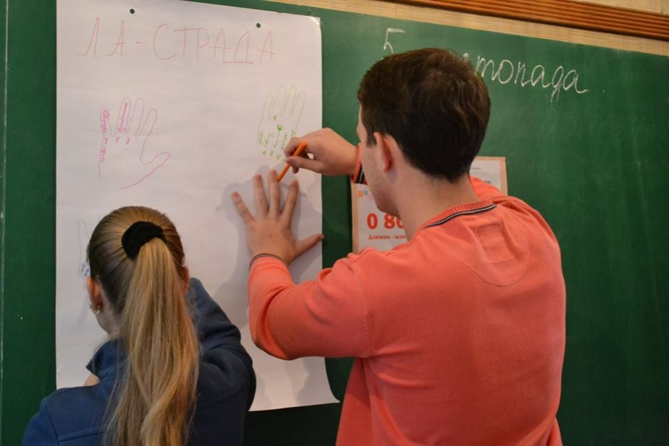 Учні жваво відповідали на запитання та із задоволенням малювали долоньки, на яких записували порушувані права людини, яка стає жертвою торгівлі.